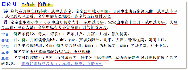 3、根據(jù)分析所得的信息,綜合起出滿足用戶個性化意愿,寶寶出生時間、地點信息,傳統(tǒng)的五行、生肖、五格,以及音韻、意蘊優(yōu)美的名字。如下是其中的一個候選名字