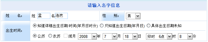 2. 點擊“解析名字”按鈕,系統(tǒng)即可為對您的名字進行解析。以下是名字“孟浩然”的一些解析信息。