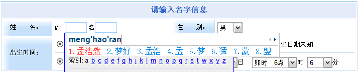 使用人名解析功能解析名字時,您可以在輸入姓氏時,使用輸入法將整個名字打出來,然后按空格鍵,您的姓氏和名字會自動填入到對應(yīng)的輸入框中。下圖演示了這一過程。